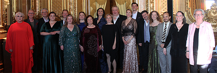 Svenska Wagner-Sällskapets jubileumskonsert, Guldfoajén – 22 maj, 2022. Iréne Theorin (1994), Wilhelm Carlsson, Anders Larsson (1995), Åsa Jäger (2015), Johan Ullén, AnnLouice Lögdlund (2001), Anneli Jupither (2010), Ingrid Tobiasson (1985), Anna Larsson (1995), Elisabet Strid (2004), Marcus Jupither, Matilda Sterby (2019), Helgi Reynisson (2020), Michael Weinius (2005), Jessica Elevant (2018), Conny Thimander (2013), Christine Morgan och Marianne von Hartmansdorff.